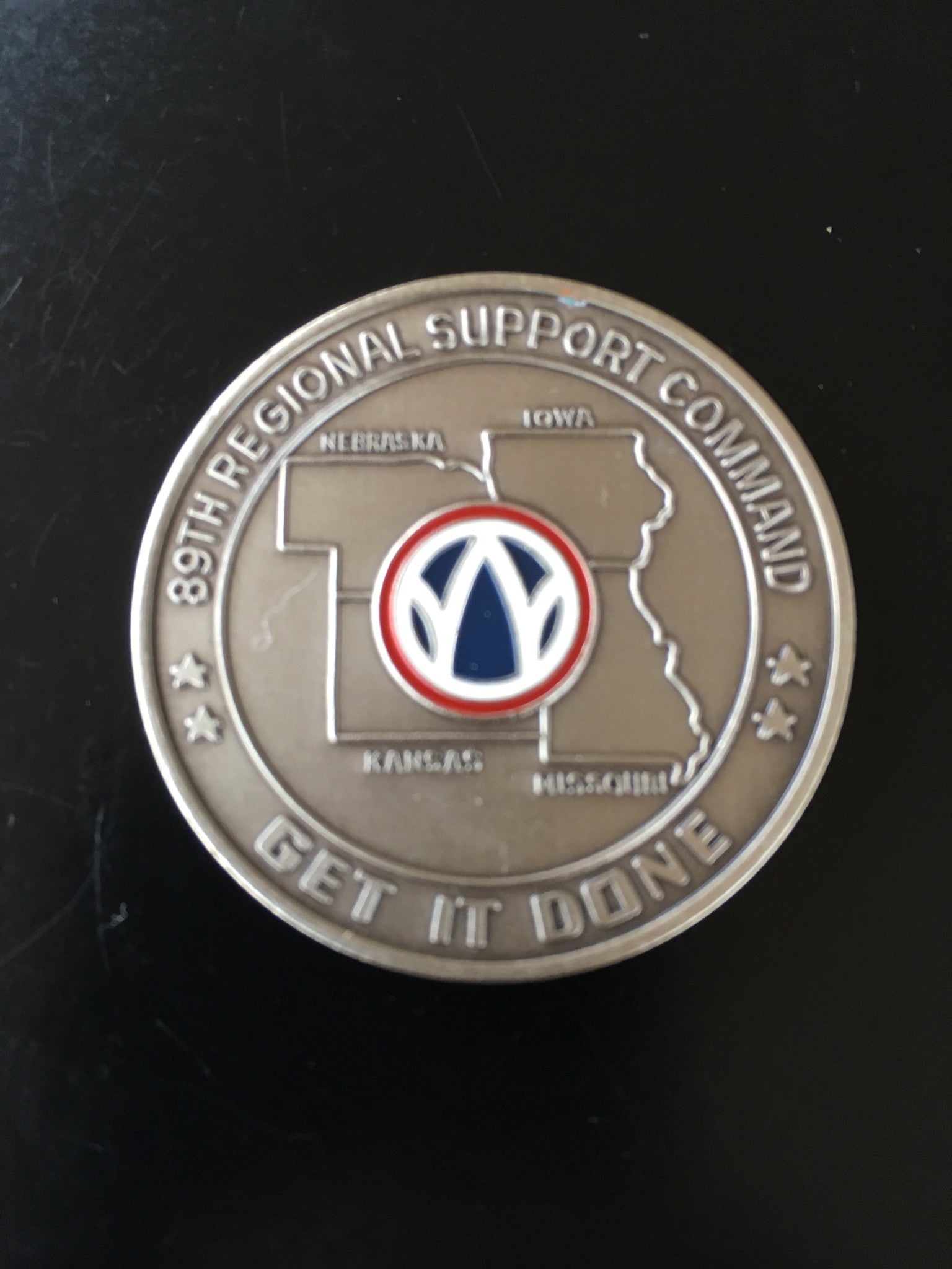This coin was presented in recognition of outstanding performance by the Commanding General, 89th Regional Support Command..."Get it Done".