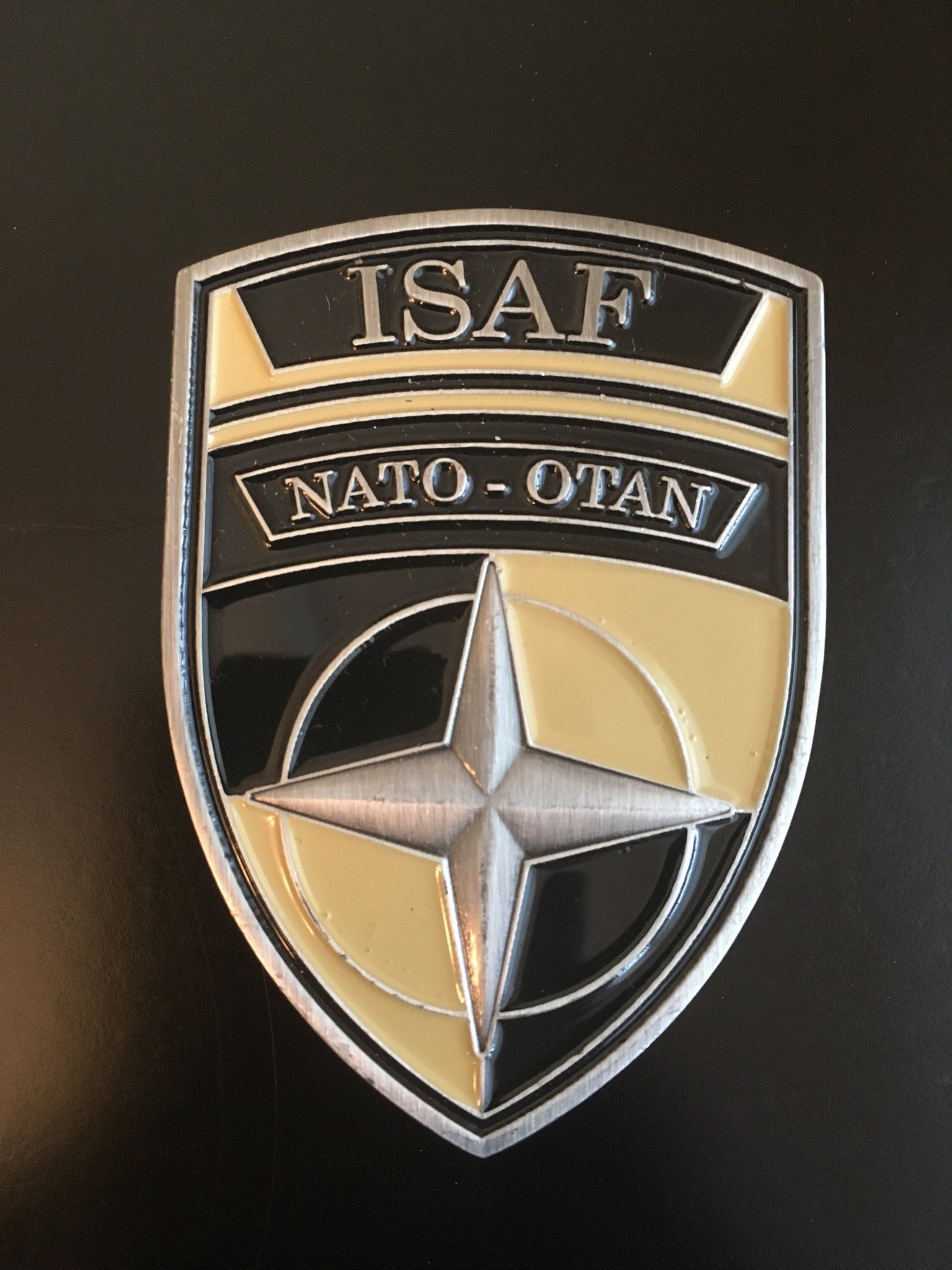 This version has Afghanistan black in color (front) and a lighter shade ISAF patch (obverse).