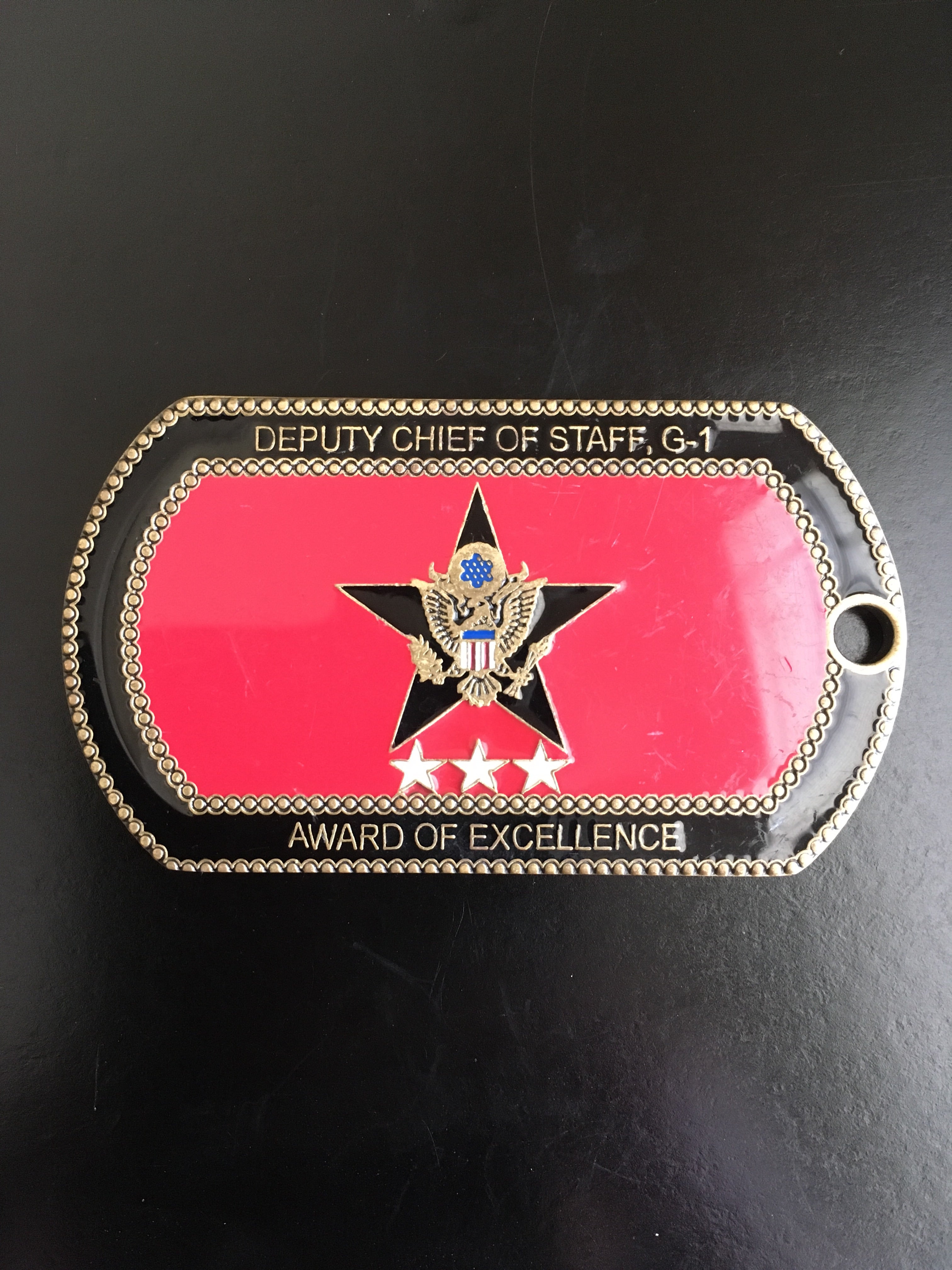This coin was 'Awarded for Excellence' by Lieutenant General Michael D. Rochelle, the Army's 44th Deputy Chief of Staff (DCS), G-1, between June 2006 and August 2009. 'An Army of One'