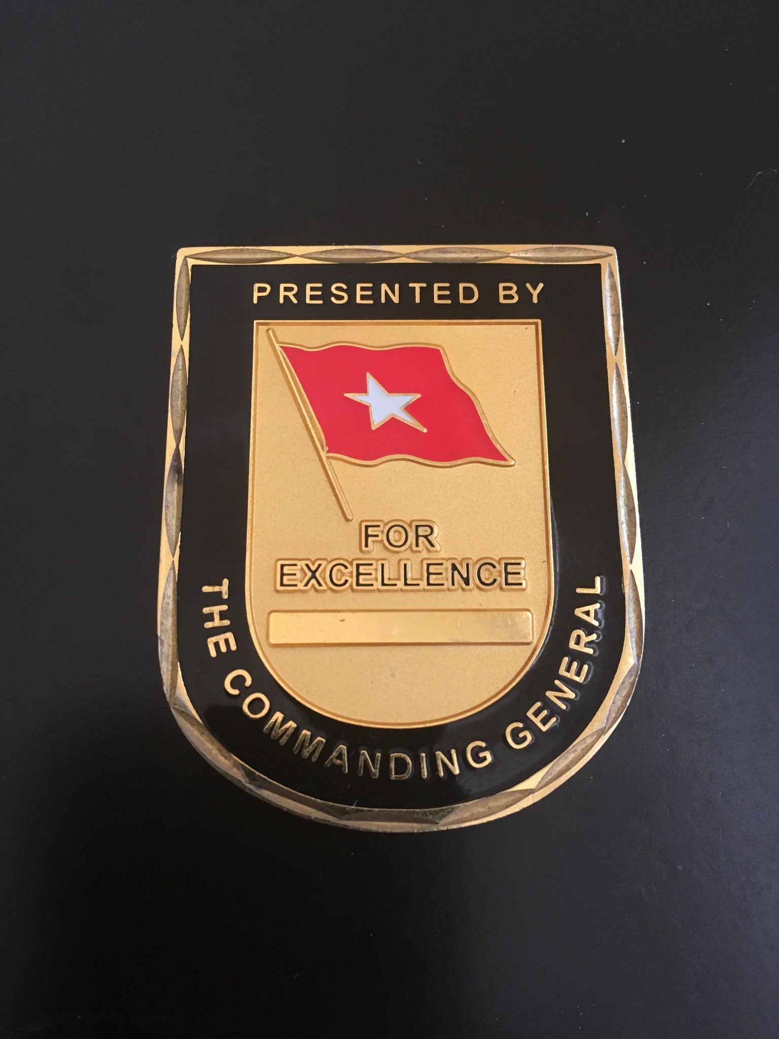 This coin was presented 'For Excellence' by the Commanding General, 5th Signal Command (Dragon Warriors), United States Army Europe (USAREUR)