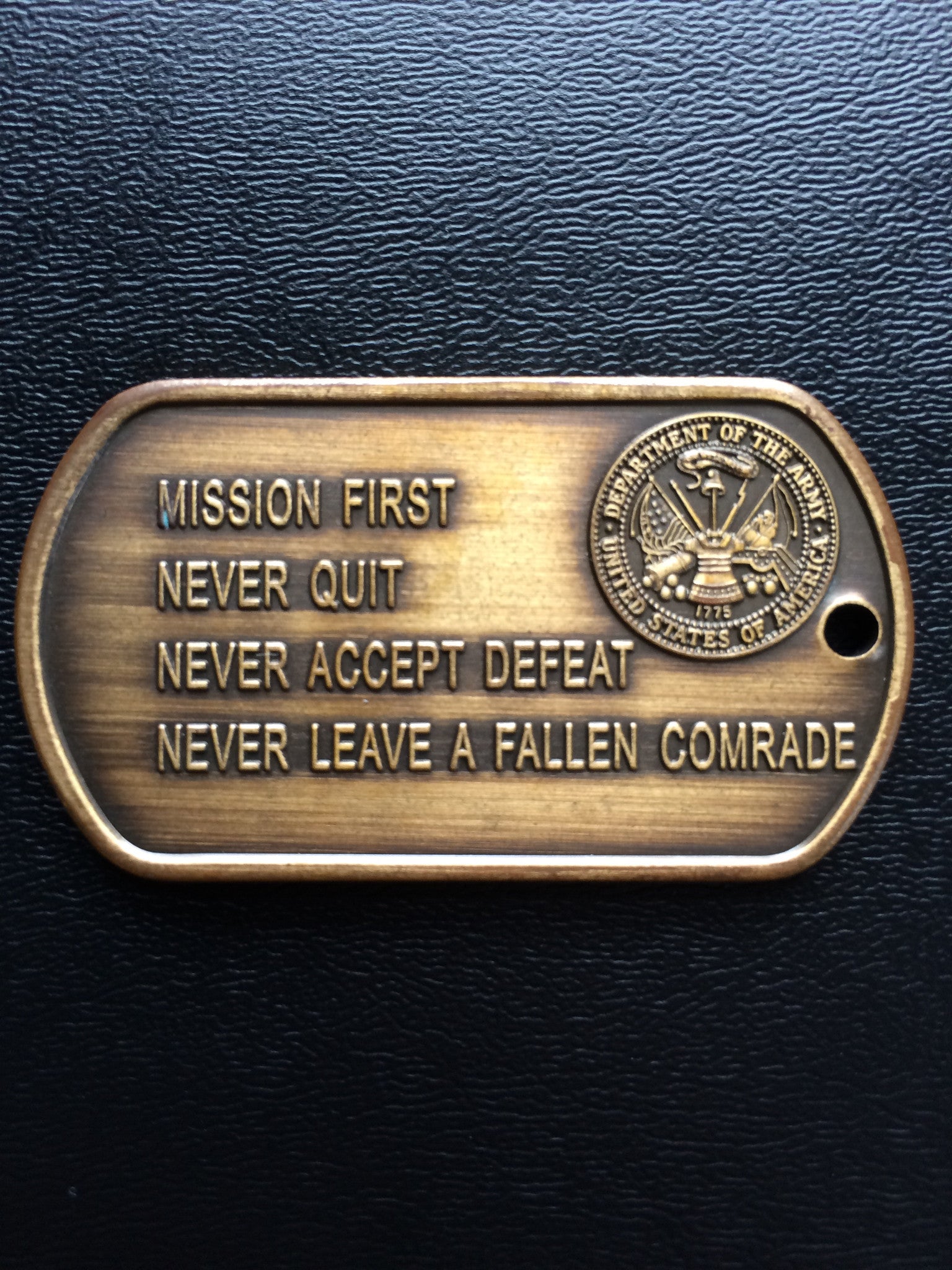 This original version has two of the Army's Warrior Ethos reversed ('Never Quit' should appear after 'Never accept Defeat').