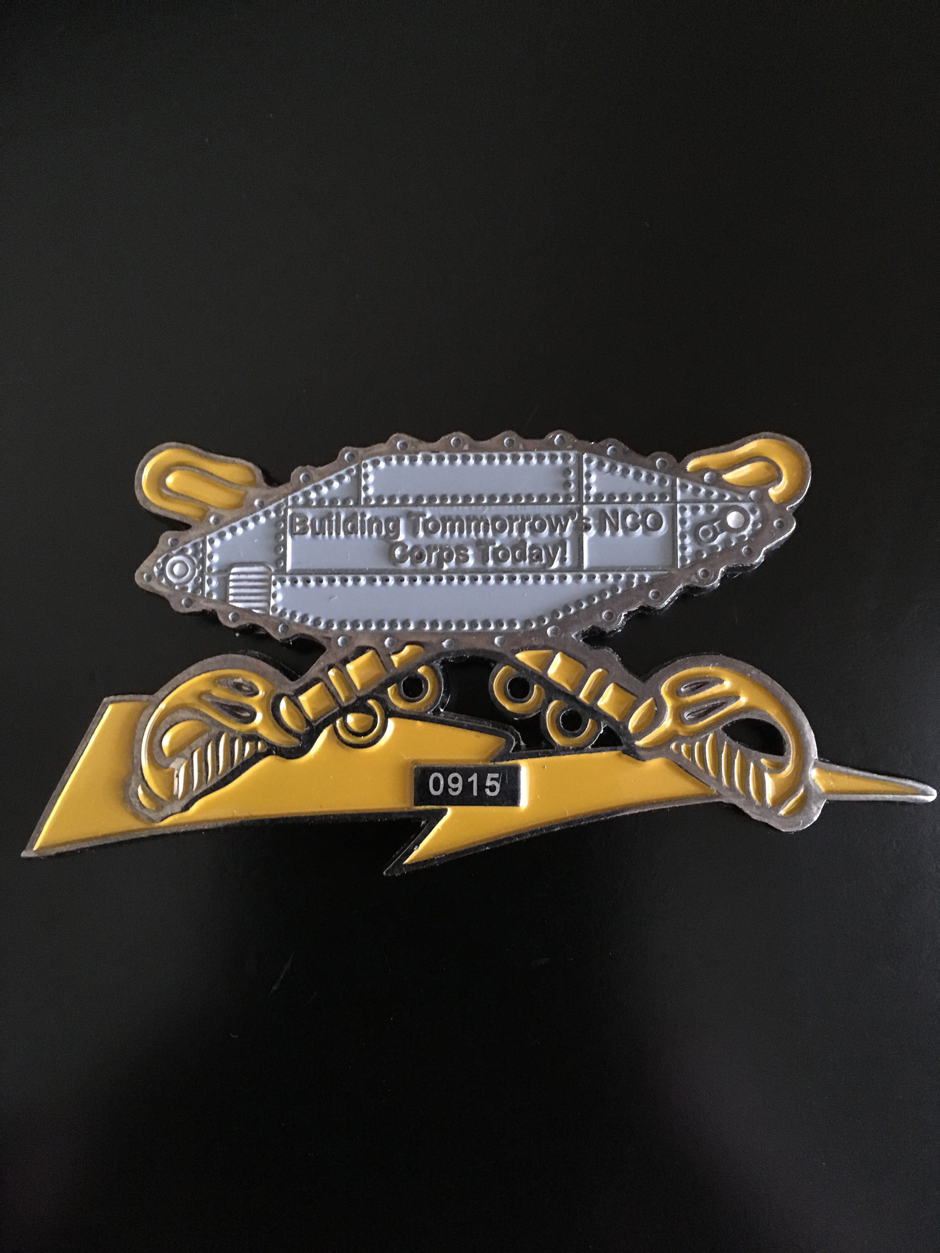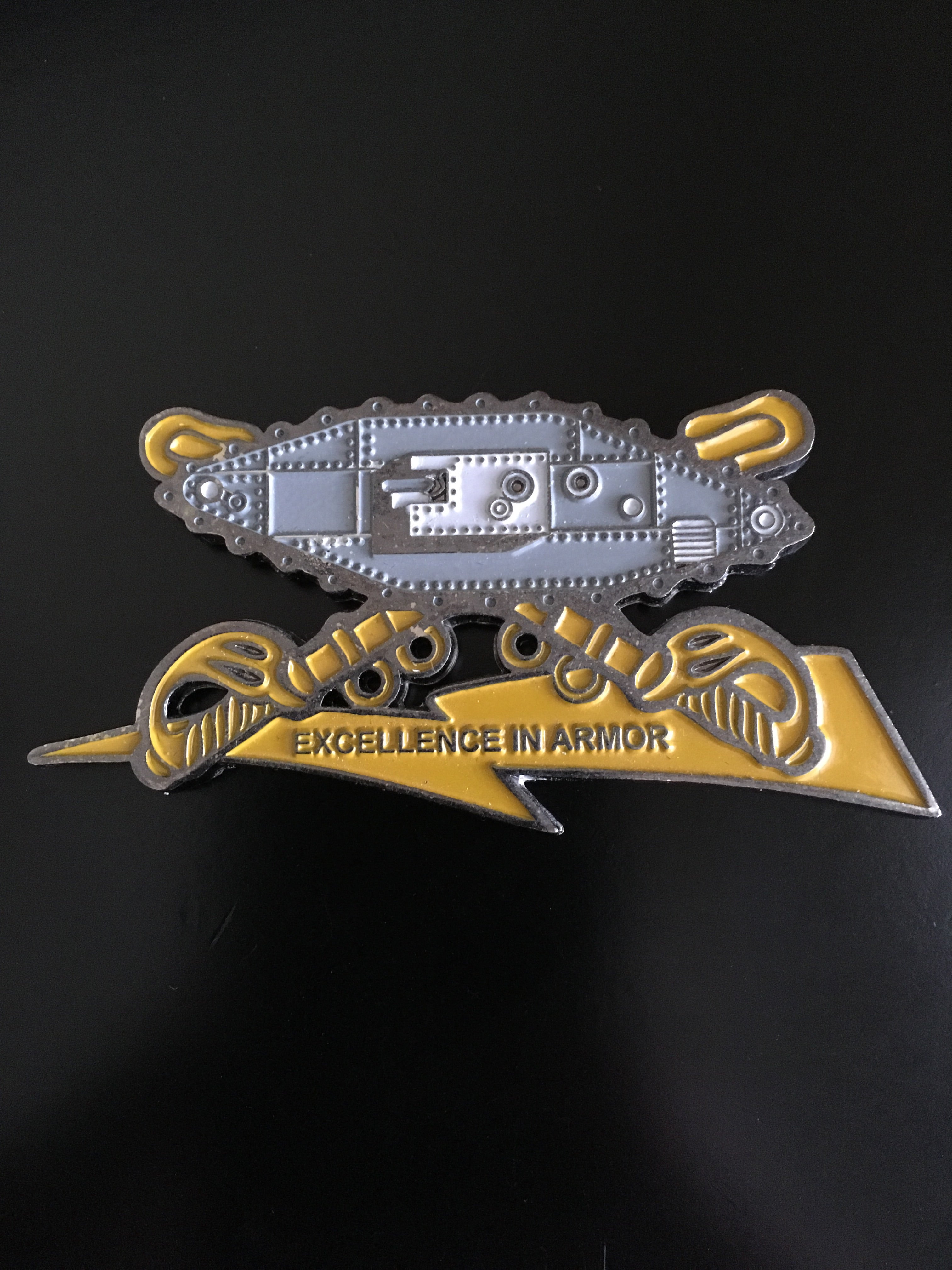 This coin (#0915) was presented by Brigadier General Leopoldo A. Quintas, 48th Chief of Armor, US Army Armor School, Fort Benning, GA in recognition of enrollment in the 'Excellence in Armor' EIA Program.
