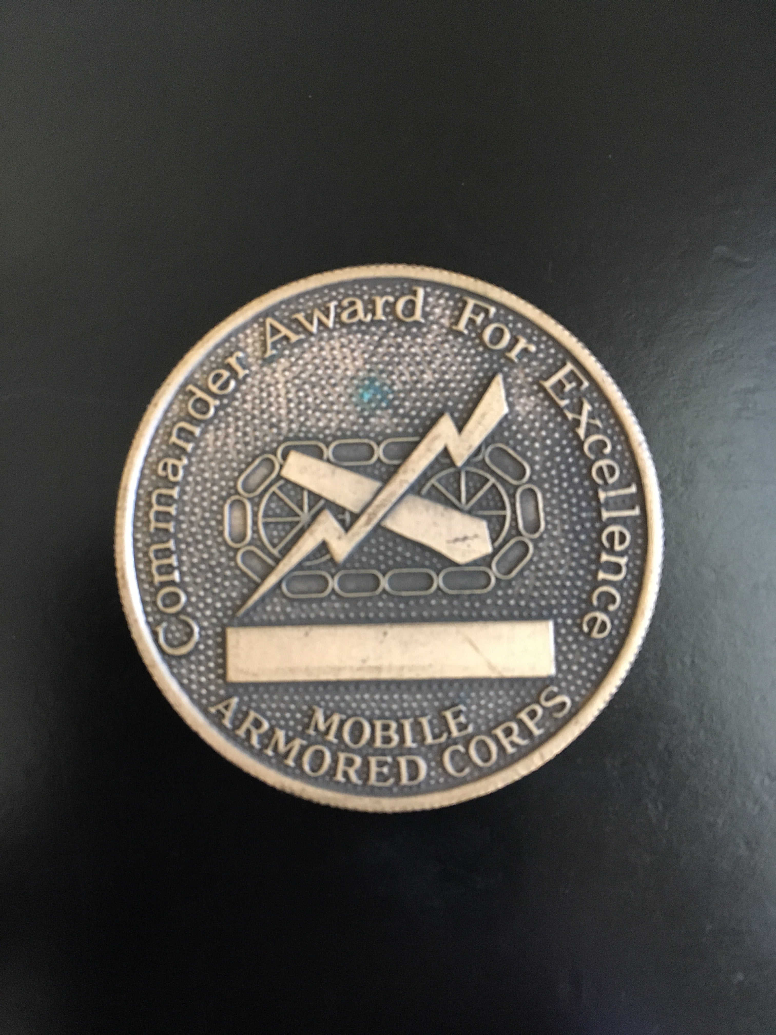 This coin was 'Awarded for Excellence' by the Commander, III Mobile Armored Corps, 'Phantom Corps', Fort Hood, Texas.