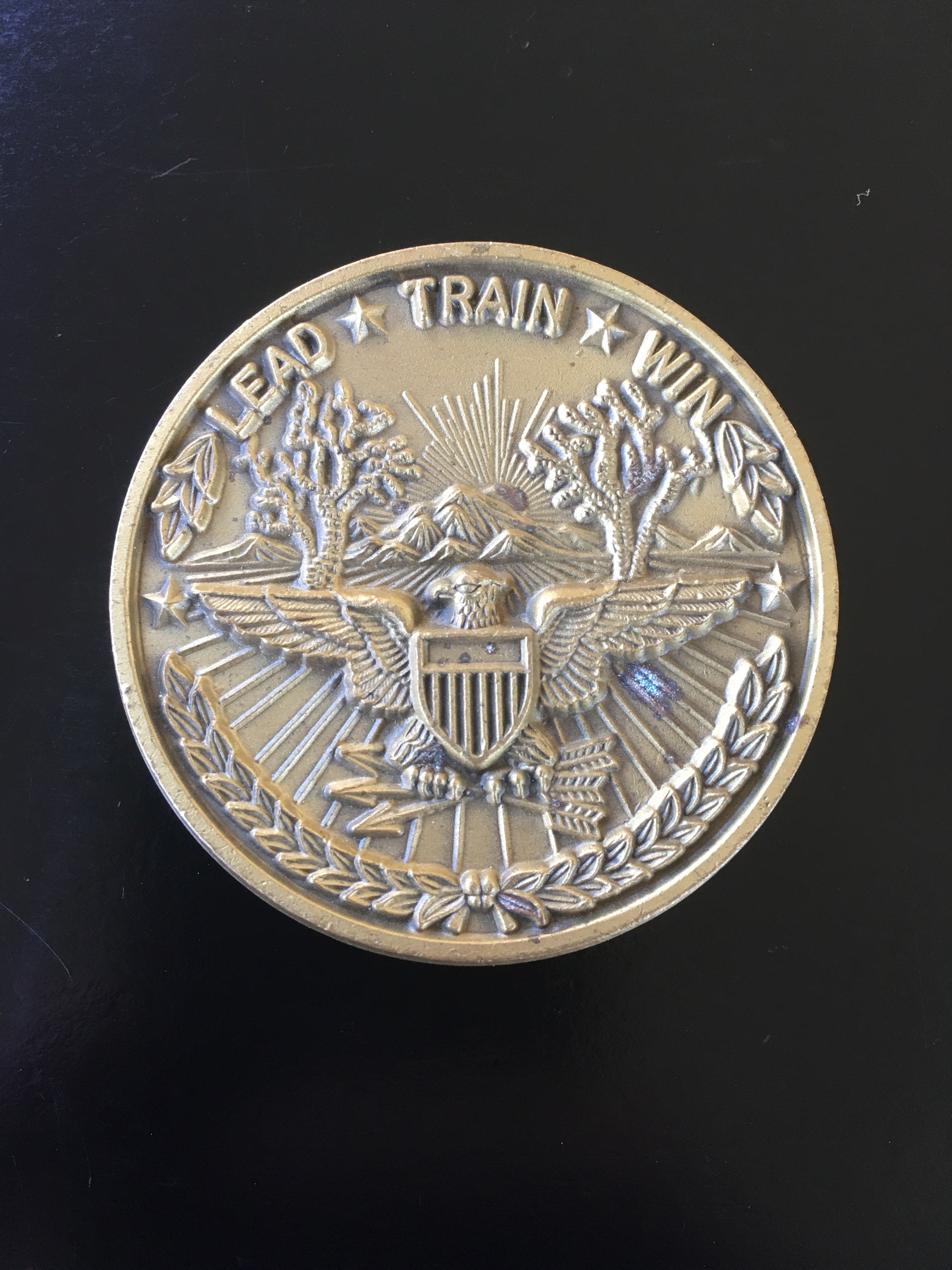 This coin was awarded by the Commanding General (CG), National Training Center (NTC) and Fort Irwin.