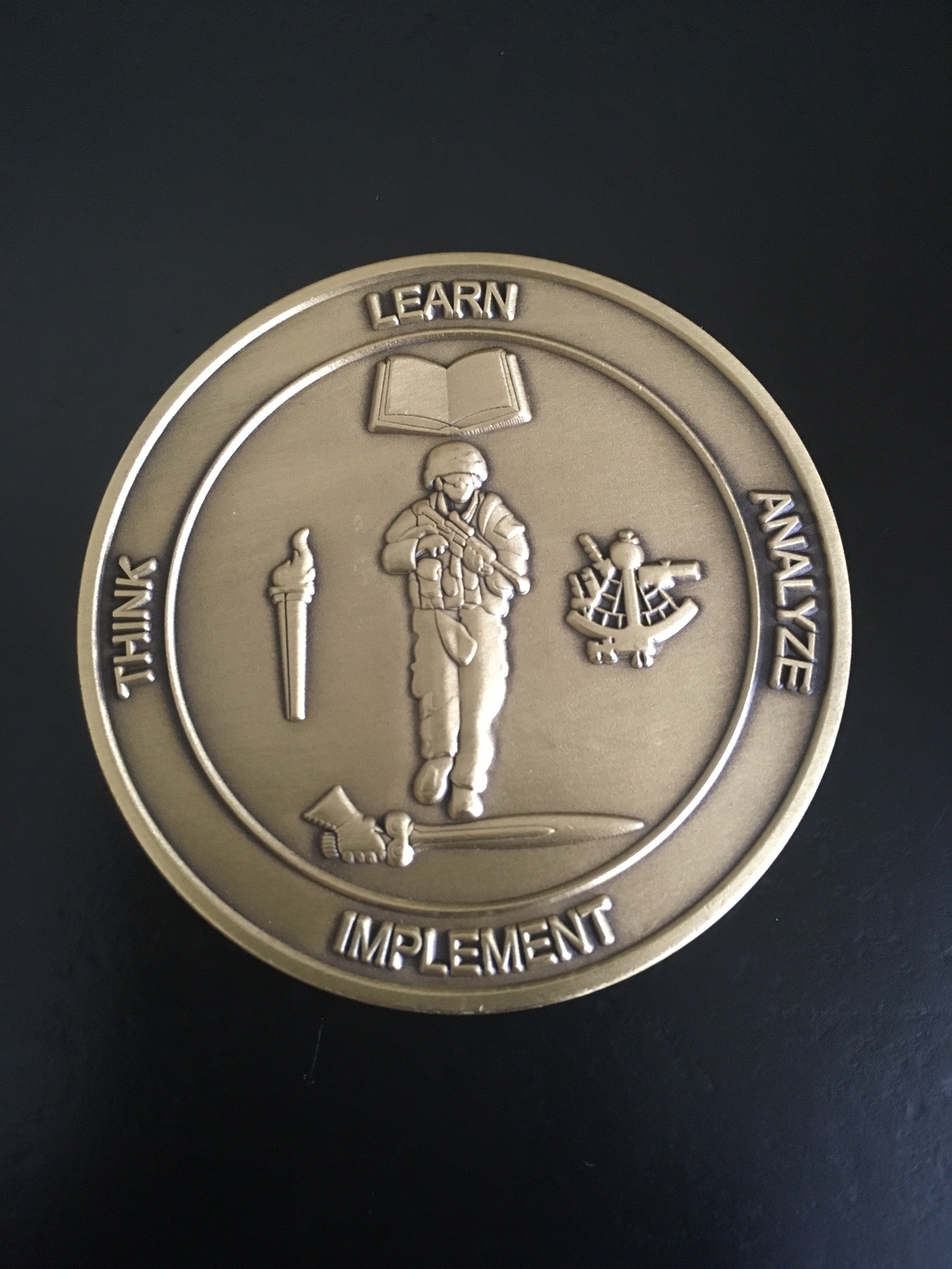 This coin was 'Presented for Excellence' by Lieutenant General (LTG) H.R. McMaster while serving as Training and Doctrine Command's (TRADOC) Deputy Commanding General, Futures/Director, Army Capabilities Integration Center (ARCIC) from July 15, 2014 through February 20, 2017 (confirmed as the 26th National Security Advisor on March 15, 2017).
