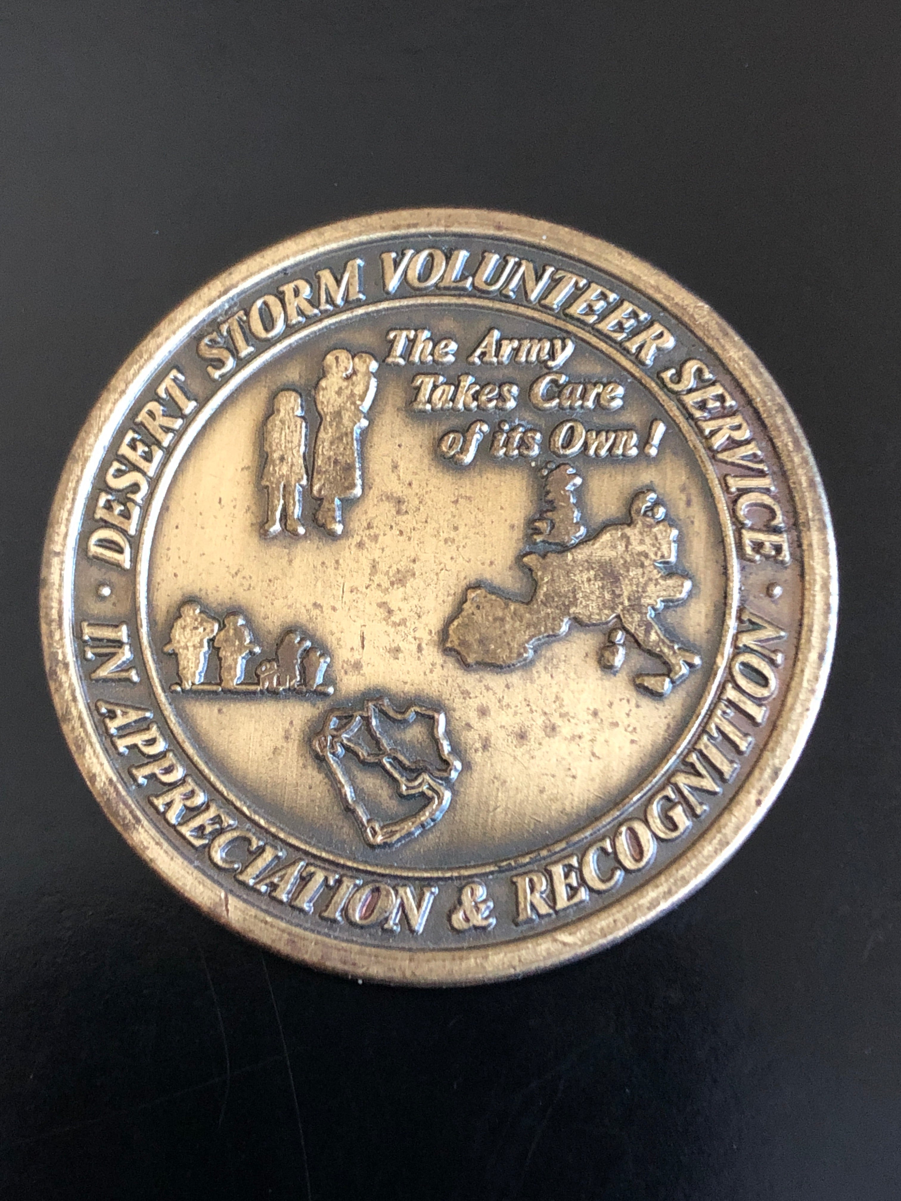 General Crosbie E. Saint served as the 27th Commander in Chief (CINC), United States Army Europe (USAREUR) & Seventh Army (CINCUSAREUR) from June 24, 1988 through July 9, 1992. This coin was awarded 'In Appreciation and Recognition' during Operation DESERT STORM.
