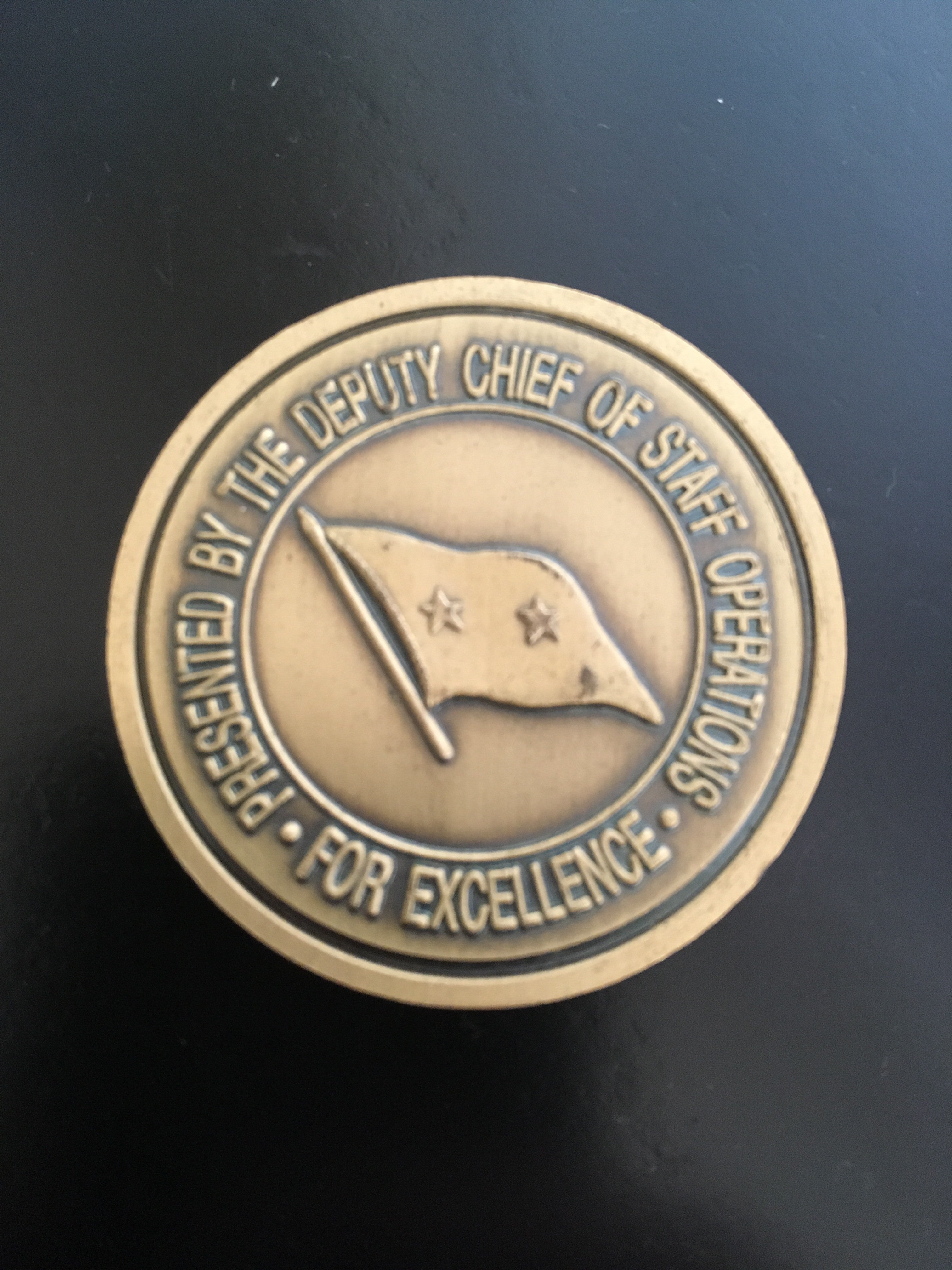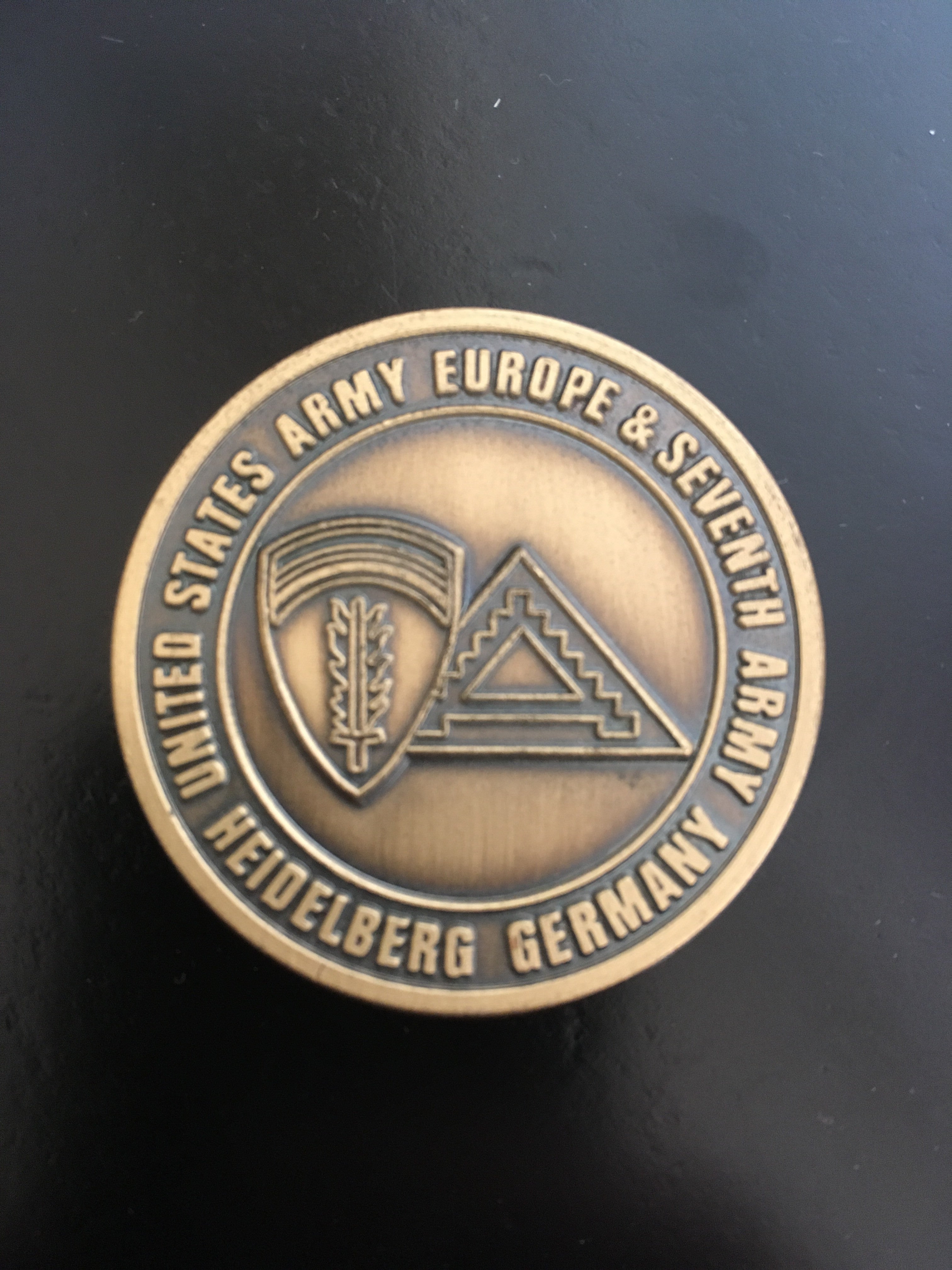 This coin was presented by Major General Daniel J. Petrosky, United States Army Europe (USAREUR), Deputy Chief of Staff, Operations (DCSOPS).  MG Petrosky was a key staff member for LTG Abrams during Operation JOINT ENDEAVOR in Bosnia.